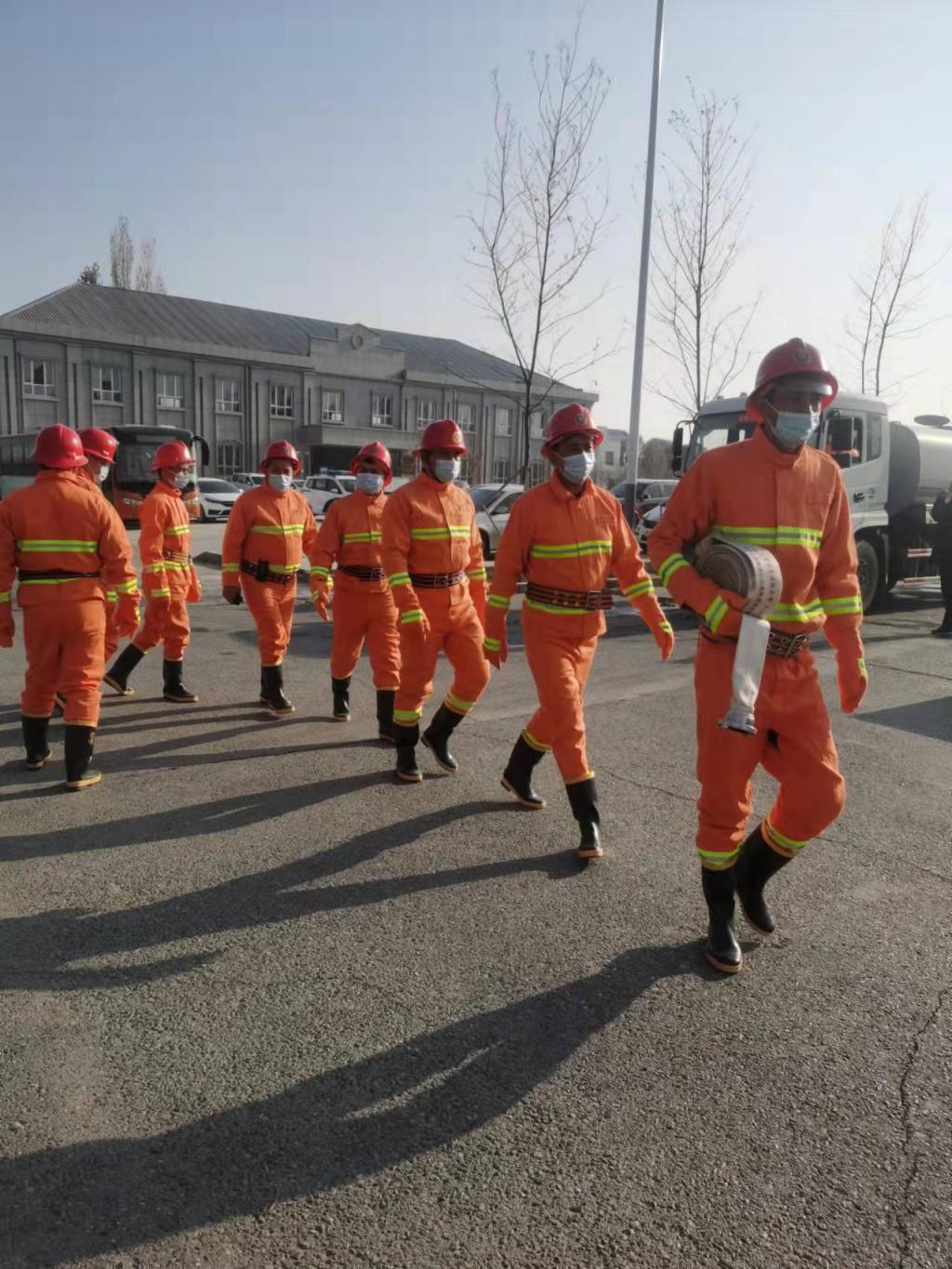 演练活动中,消防专职队负责人牵头,使用消防设备快速扑灭火源,所有成员连接消防水车及消防水管到火灾现场,通过大家的努力配合,实操演练圆满结束。