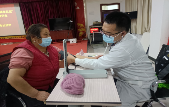 送去关怀与温暖之余,为群众进行了免费义诊活动。镇卫生院医师赵勇为前来参加活动的父老乡亲免费测量血压、血糖、耐心细致解答各类健康问题,认真倾听居民的病情陈述,针对问诊群众的不同情况,耐心解答疑问,提出预防和治疗的合理建议、赠送治疗药品,受到群众一致好评。