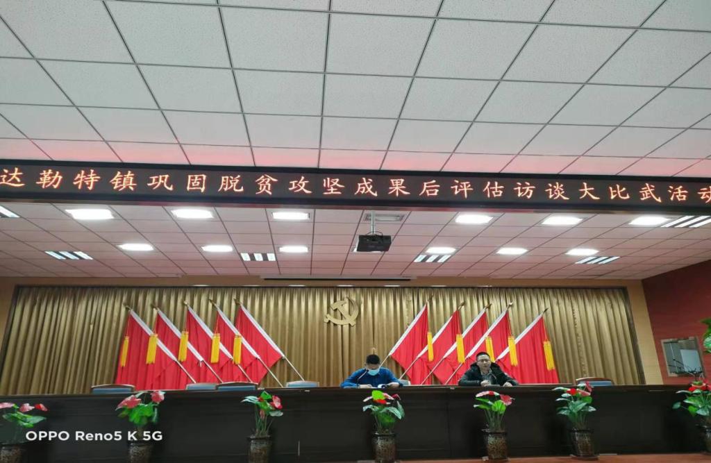 为扎实做好国家第三方评估迎检工作,全面夯实达勒特镇巩固脱贫成果评估工作基础,根据州,市关于开展夯实后评估基础做好国家第三方评估迎检专项行动的要求,2021年12月14日下午博乐市达勒特镇开展“巩固脱贫攻坚成果后评估访谈大比武”活动。全镇19个村队第一书记,村队专干,达勒特镇乡村振兴办全体干部等43人参与了此次活动,会议由达勒特镇政府副镇长李海冰主持。
