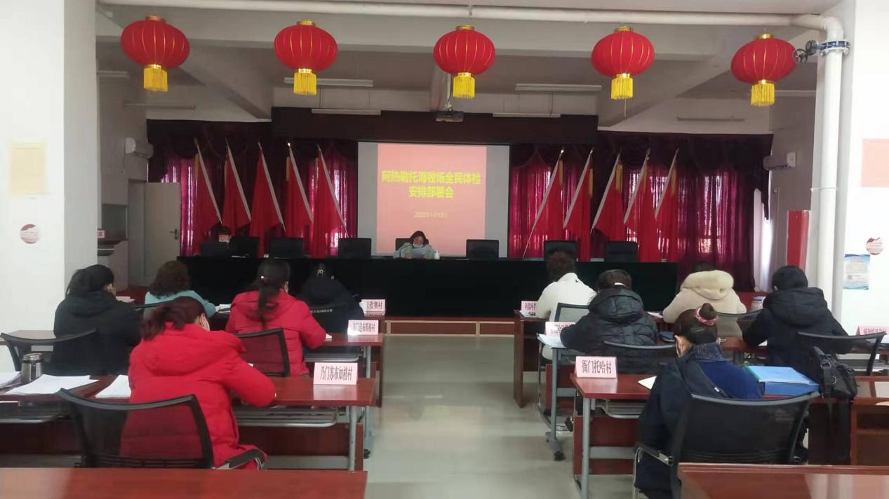 为进一步做好全场全民健康体检工作,提高群众保健意识。切实保障广大人民群众的身体健康,阿热勒托海牧场计生办组织各村联络员召开了全民健康体检工作安排部署会,会议由副场长徐艳梅主持。