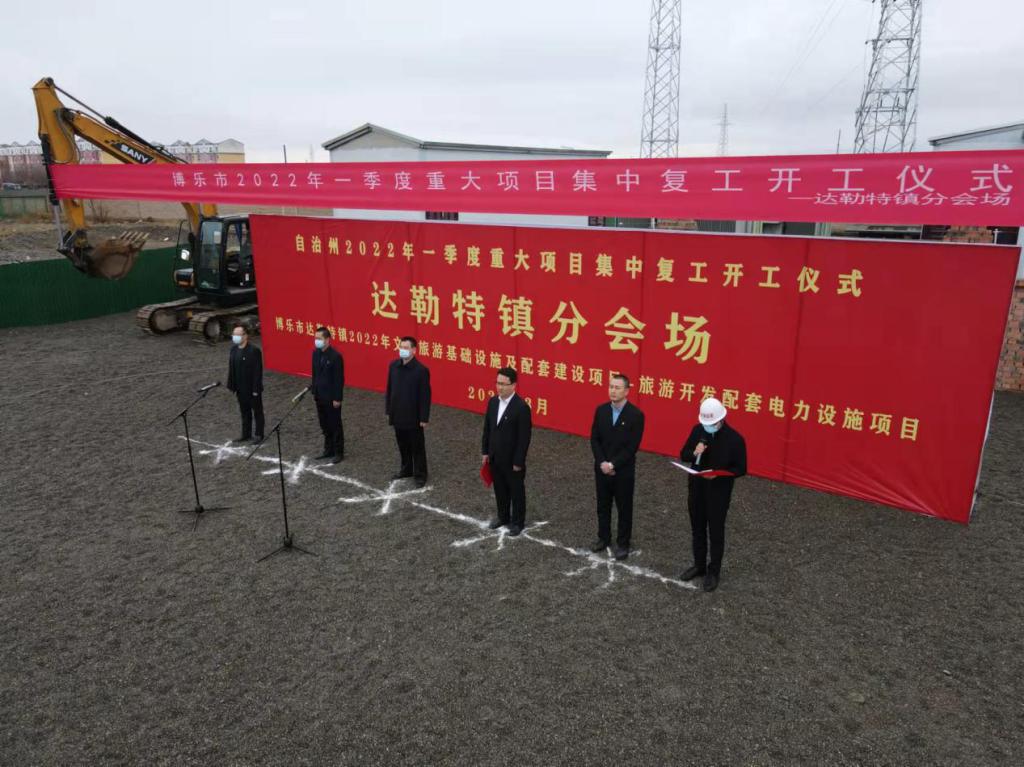 时值惊蛰,万物春回。为全面贯彻落实自治州、博乐市党委经济工作会议精神,充分发挥项目投资在稳增长、扩内需、破瓶颈、惠民生中的关键作用,迅速掀起项目建设热潮,达勒特镇于3月15日在35kv变电站项目现场召开一季度重大项目集中复工开工仪式,这标志着今年达勒特镇重大项目全面开工。博乐市人大党组副书记、主任艾山江·阿不都克里木同志出席开工仪式并宣布项目开工,达勒特镇党委副书记、镇长门克巴依同志主持仪式。