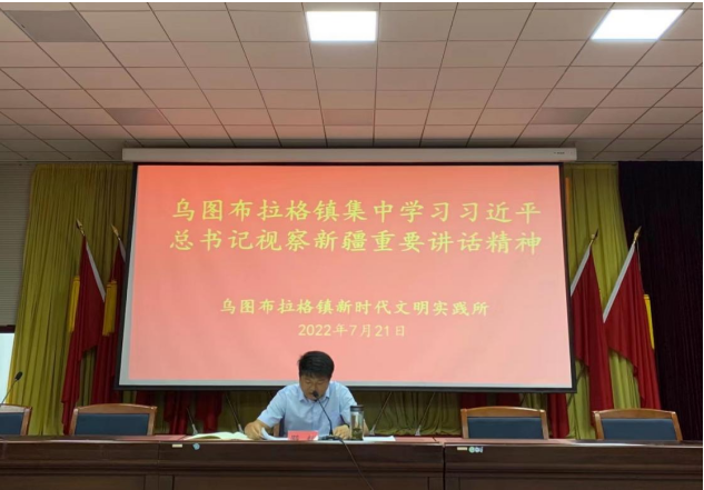 为认真学习贯彻落实习近平总书记在新疆考察时的重要讲话精神,引导全镇各族干部群众坚定信心,坚决把思想和行动统一到习近平总书记重要讲话精神和党中央决策部署上来,7月21日,乌图布拉格镇组织党员干部召开干部大会,传达学习了习近平总书记在新疆考察时的重要讲话精神,此次会议由乌图布拉格镇党委书记邵辉主持。
