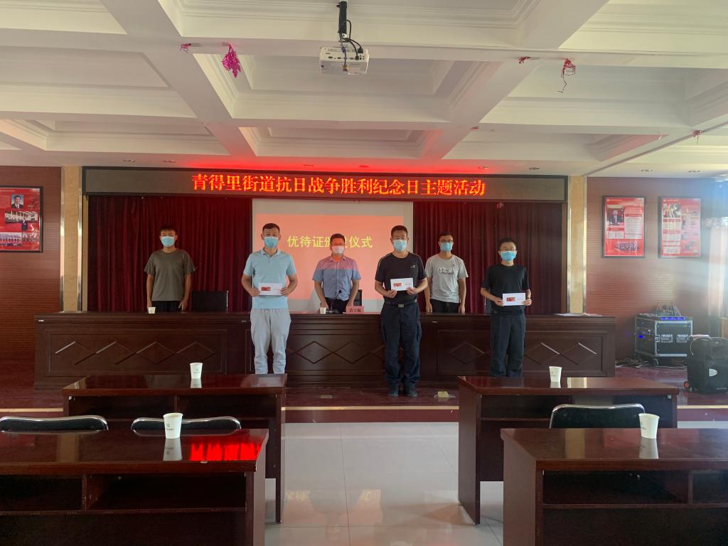 活动从全体奏唱国歌拉开序幕,青得里街道四级主任科员黄宇艇用通俗易懂的语言向他们宣讲此次活动的特殊意义。随后,大家一起观看了缅怀先烈的抗日战争胜利视频,现场气氛融洽而热烈。在此次活动中,青得里街道专门为退役军人颁发了优待证,讲解了退役军人就业创业政策等。