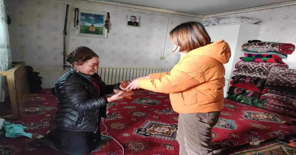 2022年12月29日,吾兰布河村村干部和党支部书记发放的中药,挨家挨户入户走访,发放到每一位身体不适的村民手中。