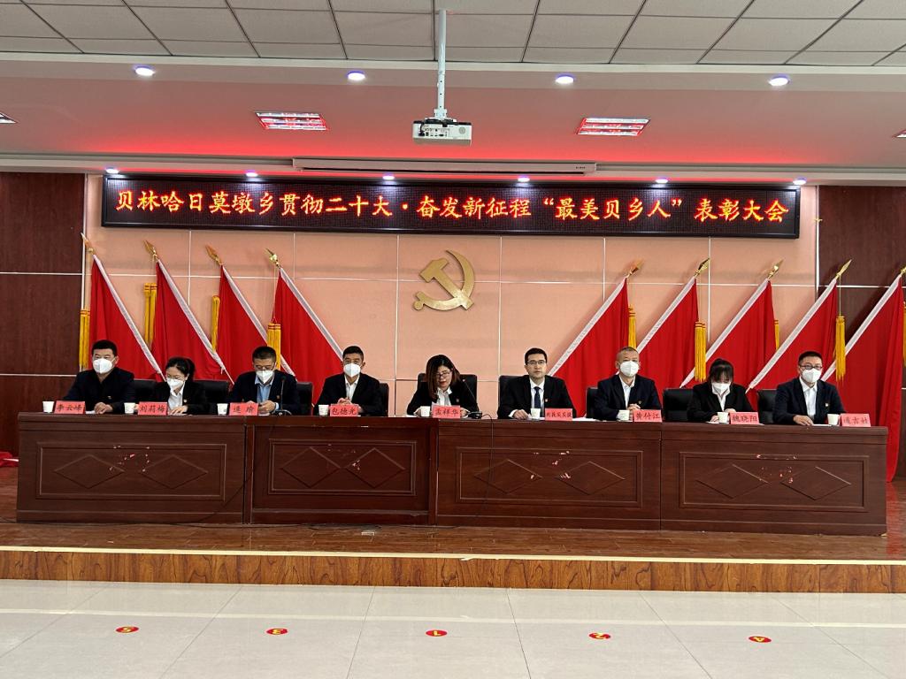 为进一步凝聚先锋榜样力量,锤炼党员干部党性修养,1月8日上午,贝林哈日莫墩乡在玛尼乡村三楼会议室召开了贯彻党的二十大·奋发新征程“最美贝乡人”表彰大会,贝林哈日莫墩乡领导班子成员、各村党支部书记,以及受表彰的各类先进个人参加此次大会,大会由乡党委副书记、乡长肉孜买买提·努尔买买提主持。