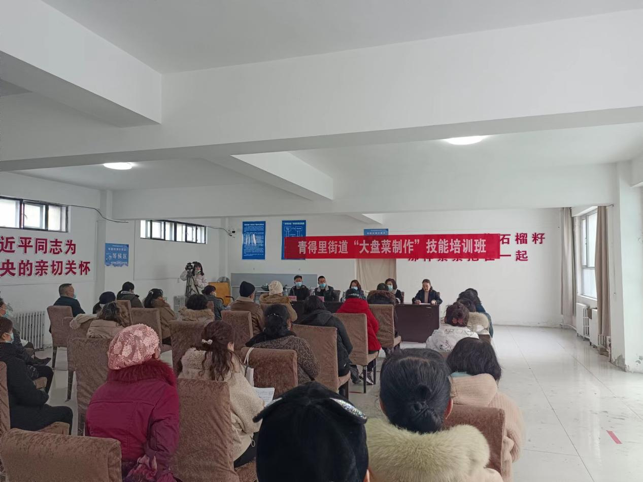 为进一步做好辖区居民就业服务工作,提高社区居民自身综合素质,帮助广大居民学会一技之长,进而拓宽新形势下就业渠道,达到增加家庭收入、提高生活质量的目的。青得里街道组织开展了为期3天的大盘菜技能培训,2023年2月20日是第一天,邀请了博乐市家和培训中心的师傅刘辉对大盘鸡、水果辣白菜制作进行技能培训。