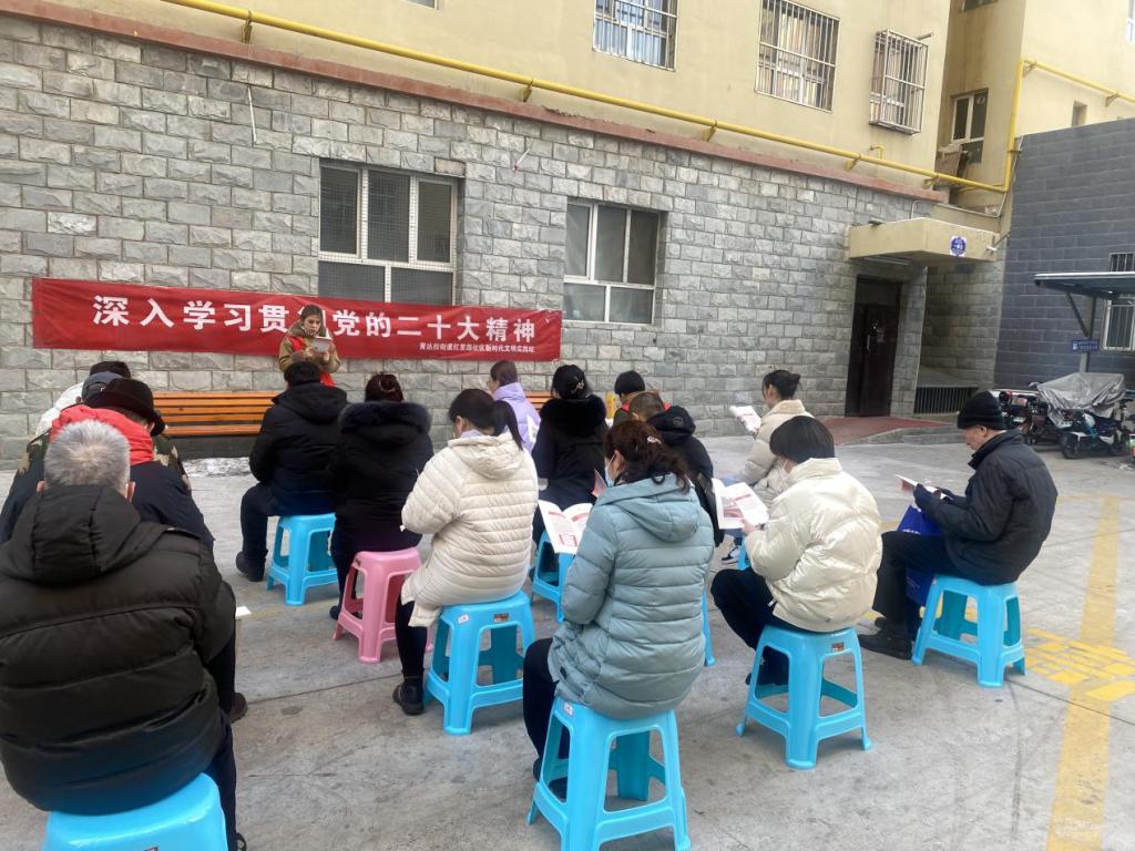 为深入学习宣传贯彻党的二十大精神,让党的二十大精神在基层落地生根。2月22日上午,青达拉街道在辖区小区组织开展“深入学习贯彻党的二十大精神”主题宣讲活动,由红星路社区综治干事毕拉尔担任此次宣讲人,居民党员们围坐一起,认真聆听。