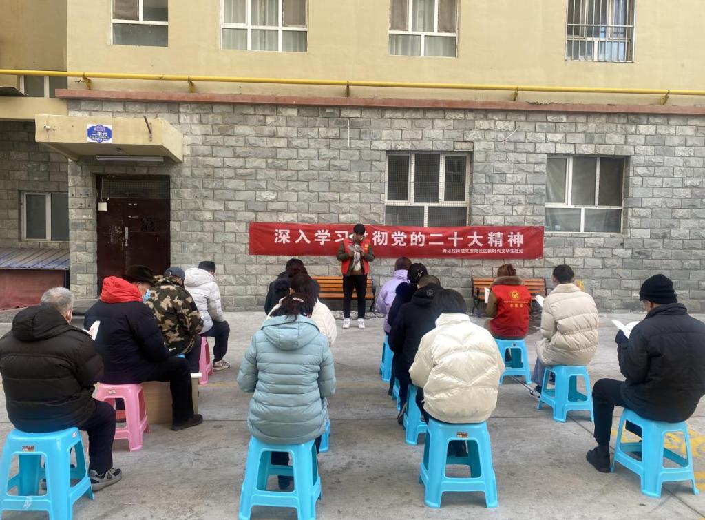 宣讲过程中,红星路社区综治干事毕拉尔拿着党的二十大精神群众读本向居民党员们宣讲了党的二十大召开的重大意义、新时代新征程中国共产党的使命任务、全面建设现代化国家的战略部署等,同时与党员群众进行面对面、心贴心地交流。用通俗易懂、喜闻乐见的话语,从老百姓日常生活中关心的事说起,让“冒热气”的理论以“接地气”的方式深入人心,并鼓励大家珍惜现在的幸福生活,听党话、感党恩、跟党走,以积极的态度努力创造美好生活。