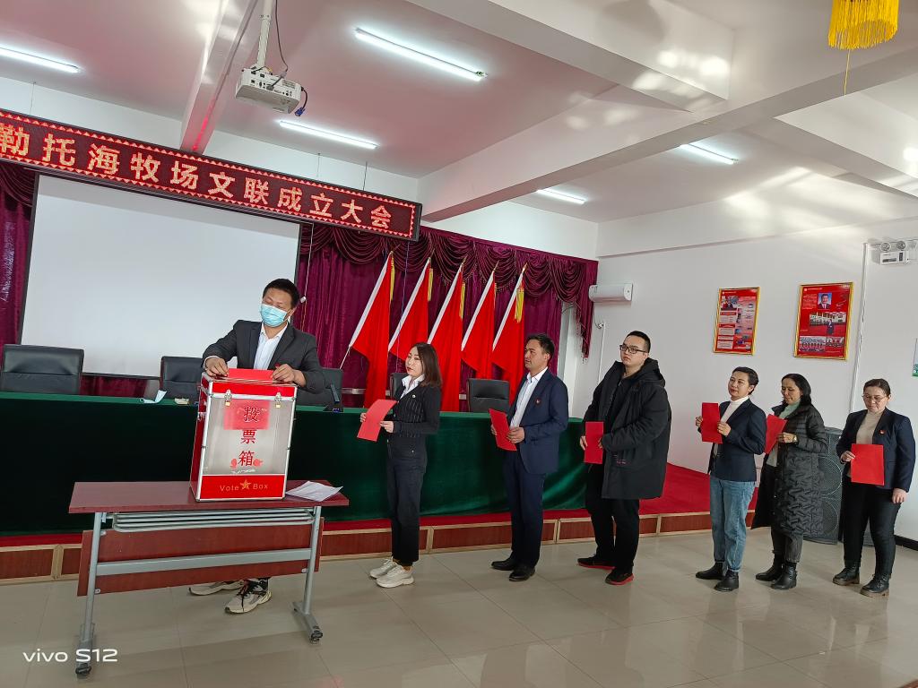 为进一步提升阿热勒托海牧场人民群众文学艺术水平,为文学艺术爱好者提供一个互相学习、互相交流、共同提高的平台。2023年3月1日上午,阿热勒托海牧场文学艺术届联合会第一次代表大会在场机关三楼会议室隆重举行,辖区村队代表及辖区文艺爱好者共计56人参加会议。