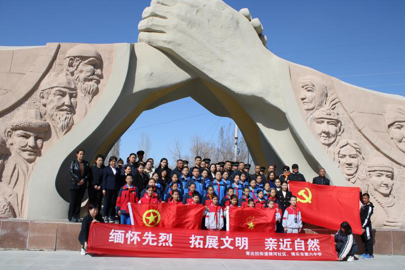 博乐市青达拉街道组织辖区社区党支部、社区“访惠聚”工作队2023年4月3日下午在“爱国主义教育基地”博尔塔拉蒙古自治州纪念园开展“缅怀先烈、拓展文明、亲近自然”主题扫墓活动,此次参加活动的共建单位有中国人民解放军96339部队、博乐市交通运输管理局、博乐市第六中学共60余人参加此次活动。
