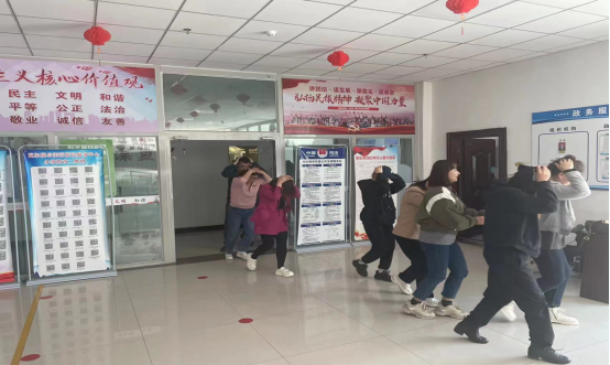 2023年5月9日上午,克尔根卓街道开展了防震减灾应急演练,演练根据防震应急预案和结合街道办公实际进行,参与人员街道机关全体人员和快乐社区全体人员以及正在大厅办理业务的居民,演练在总指挥街道党工委副书记、政法书记梁国勇拉响的一声防控警报器下拉开序幕,第一声报警拉响后,指挥长立即用防控对讲机说明,大家不用慌,现在是震动期,大家先保护好头部躲藏在办公桌或着坚硬的物体下,大家听到总指挥的指令后立即抱头躲藏到坚固的物体下等待震动稳定后自救,当第二声防控警铃拉响后,大家迅速抱头从安全逃生通道往外面安全地带集结。
