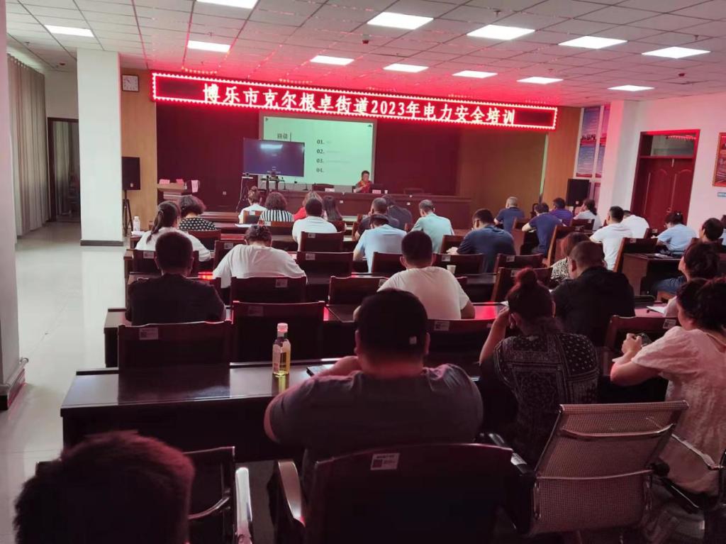 为确保夏季高温期间辖区内电力安全形势稳定,做好电力行业领域高温天气期安全风险防范工作,有效遏制各类电力安全事故发生,克尔根卓街道于6月14日邀请博乐市供电局王浩鹏讲师在我辖区开展电力安全培训,此次培训共邀请各社区各物业各辖区单位40余位负责人参加。