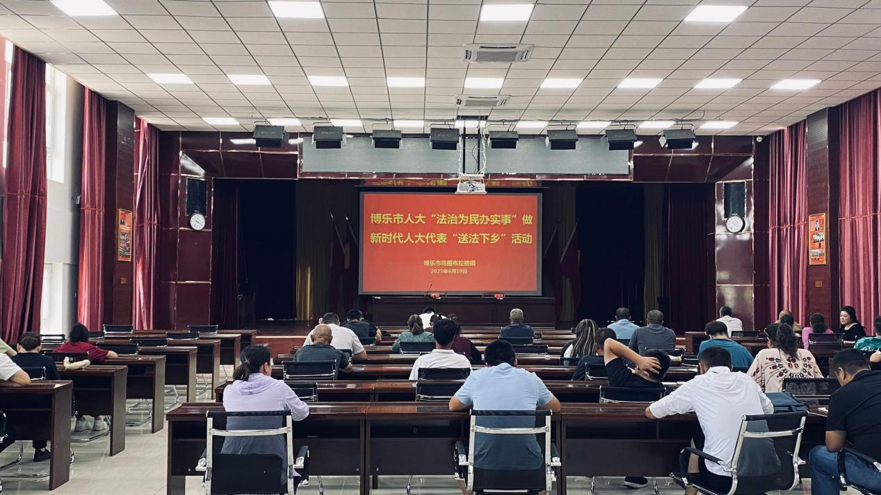 2023年6月19日,博乐市人大“法治为民办实事”做新时代人大代表“送法下乡”活动走进乌图布拉格镇,乌图布拉格镇人大主席与人大代表共57人参加。