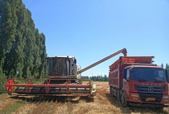 走进青得里镇道尔克顾力木图村的冬小麦种植基地,收割机来回穿梭,分片作业,机械驶过,一簇簇麦穗被卷入收割机仓,收割、脱粒、除杂一气呵成。