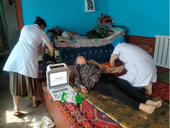 青得里镇计生协联合卫生院医生到村民家中上门服务,对群众的健康状况进行问诊,现场测量血糖、血压、血氧,叮嘱日常保健、饮食注意事项等。以实际行动提升他们的健康获得感、幸福感、安全感。