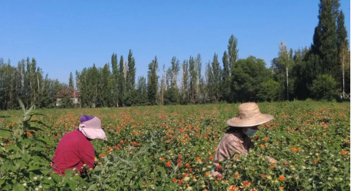 红花药用价值高,浑身都是宝,是一种耐旱经济作物,阿里翁白新村的地理环境和水土光热条件适宜红花生长。发展特色种植,加快致富步伐,助力乡村振兴,让红花成为带动村民们增收的“致富花”。