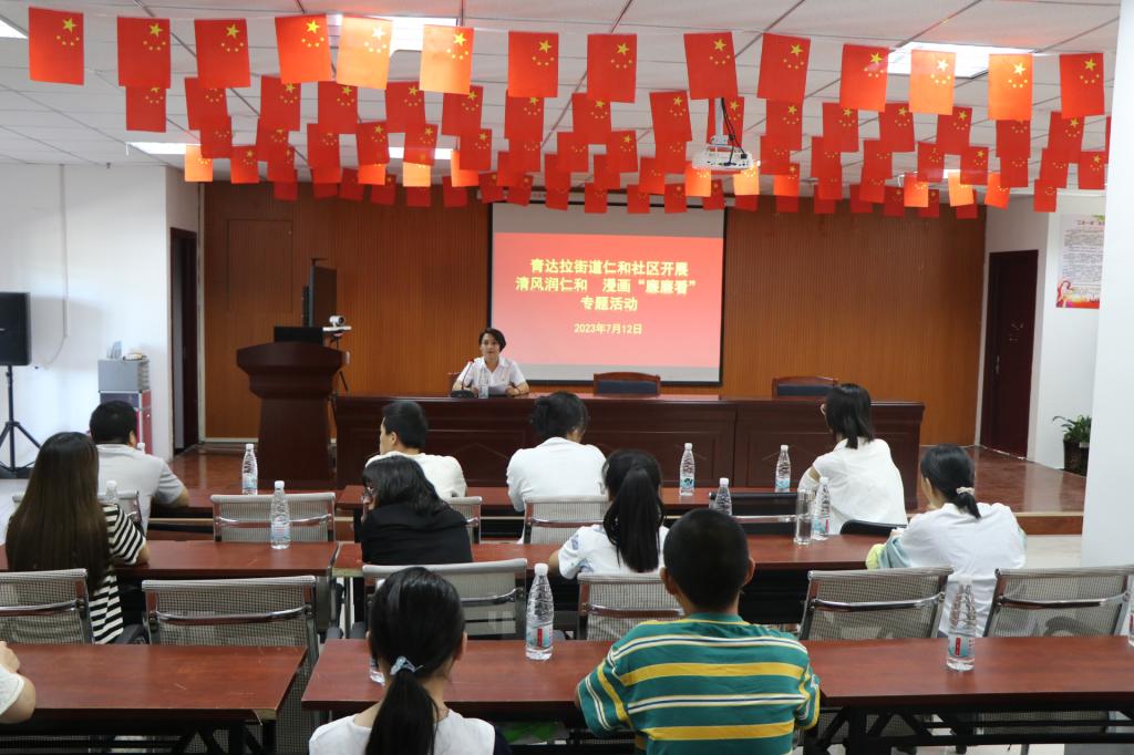 7月13日下午,青达拉街道在二楼会议室举办了“清风润仁和漫画“廉廉”连连看”主题廉政漫画展览活动,展出“廉政漫画”,以“廉政文化进社区、进家庭”为内容的手抄报漫画,通过新颖独特的艺术视角和形象直观的表现形式,紧扣“党风廉政”学习教育内容,向居民进行反腐倡廉宣传,吸引了社区党员、居民前来观看,感受艺术、学习廉政文化。使廉政文化融入社区文化,渗透到普通居民心中。