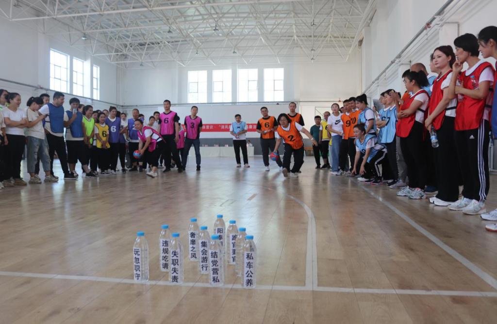 看,青达拉街道纪检干部庞雅玲手拿篮球对准保龄贪腐的瓶子,用快准狠的力量,将贪腐中“优亲厚友”的“贪腐”瓶击了个粉碎,包括“私车公养”“刁难群众”“拉帮结派”“挪用公款”等“贪污腐败”的形式的“保龄球”统统打下神坛,在纪检干部雷霆手段下和运球的力道中纷纷坠落比赛台子,旁边观看的干部纷纷叫好。比赛现场气氛激烈、各种运动项目精彩纷呈,现场观众加油声喝彩声此起彼伏……通过趣味游戏的方式、使党员在运动中增强对廉洁自律的理解和认识,提高崇廉尚洁的自觉性。