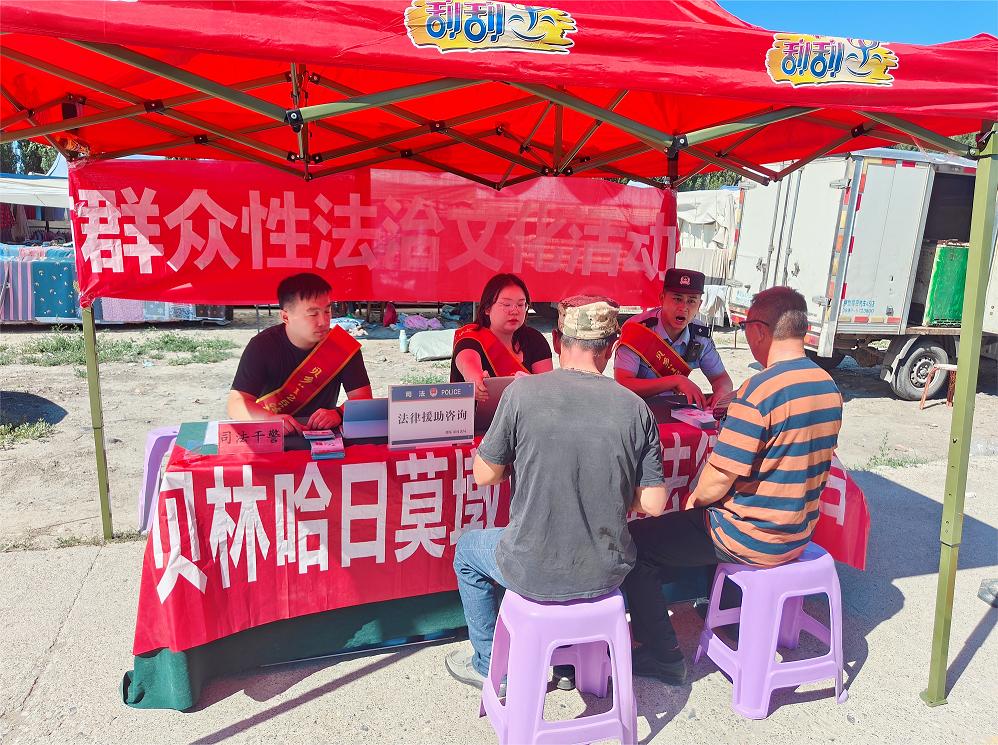 为进一步推动贝林哈日莫墩乡普法强基补短板工作走深走实,按照“谁主管谁普法、谁服务谁普法”的原则,进一步提升辖区广大群众的法律意识,助力乡村法治建设。增强辖区群众守法、学法、懂法意识,大力弘扬宪法精神,加强贝林哈日莫墩乡宪法宣传力度,维护宪法法律权威,7月14日上午,乡司法所、派出所、乡法律顾问联合开展“普法宣传‘赶大集’服务群众零距离”活动。活动主要围绕“《中华人民共和国民法典》、防范电信网络诈骗、预防发生未成年人溺水安全事故、矛盾纠纷调处、”开展宣传。