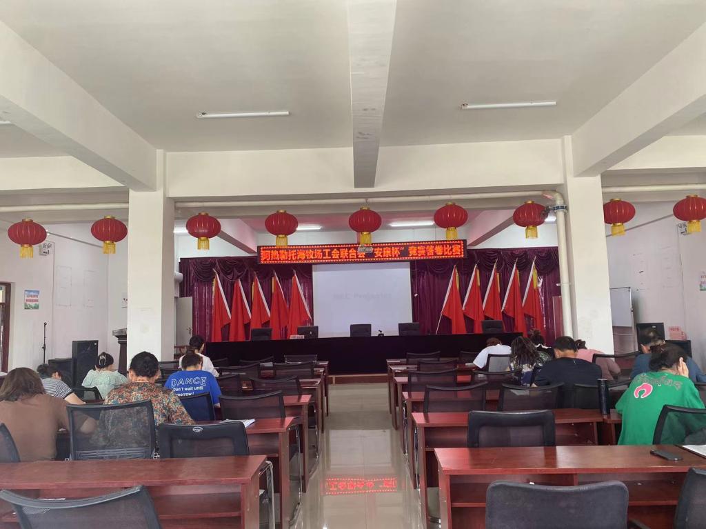 为深入贯彻党的二十大精神和习近平总书记关于安全生产重要论述,督促生产经营单位落实安全生产主体责任和全员安全生产责任制,防范遏制生产安全事故发生。2023年7月28日,阿热勒托海牧场工会联合会举办了一场“安康杯”安全生产知识竞赛。
