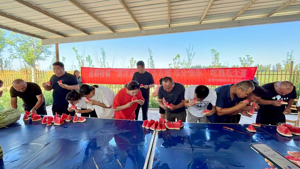 为消减夏日酷热,丰富干群业余生活。8月7日上午,达勒特镇“清凉一夏魅力古城瓜分快乐”吃西瓜大赛在达勒特古城隆重举办。