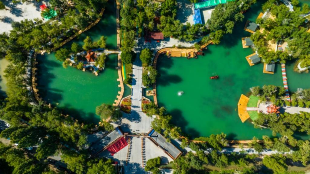另一边,在一步一景的生态园内,游客畅游水上乐园、游船区、垂钓区、房车营地等,感受刺伢子沟的华丽变身。