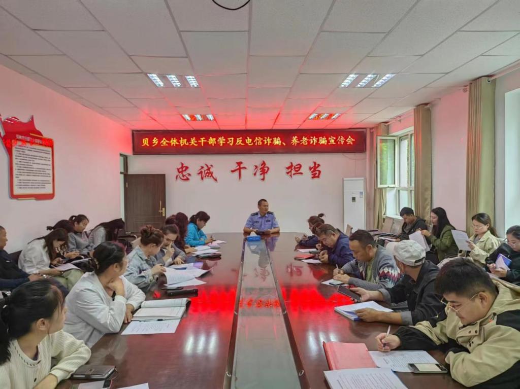 9月13日上午,贝林哈日莫墩乡综治办联合乡派出所组织全体机关干部共计35人开展“贝乡全体机关干部学习反电信诈骗、养老诈骗宣传会”宣传教育活动。