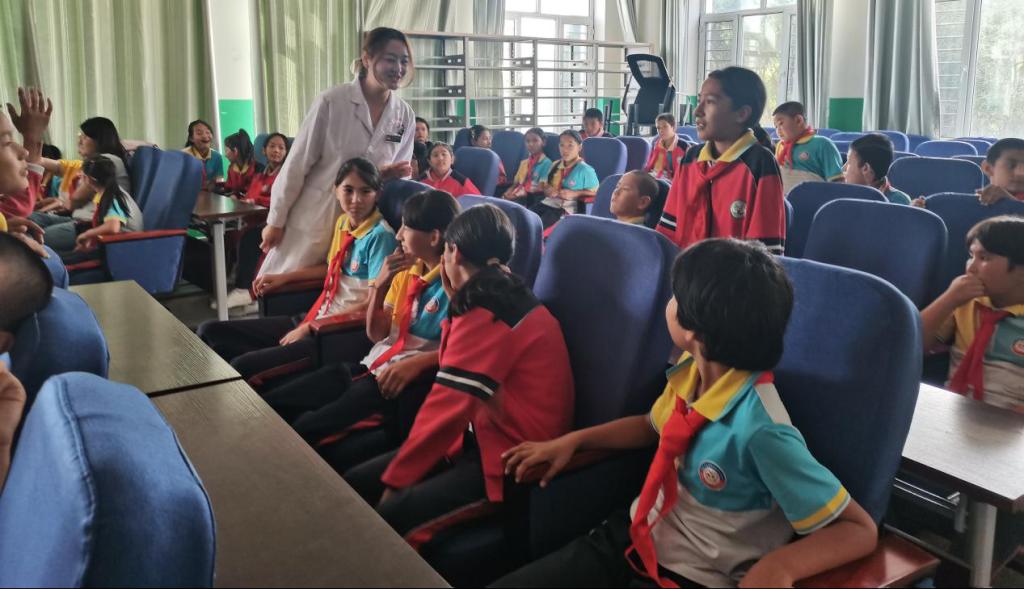 最后,由周医生向同学们开展了主题为“小学生自我认识与探索”的心理健康教育,周医生通过几则简短的寓言故事,与同学们的交流互动,逐步打开同学们的心扉,用喜闻乐见的方式在潜移默化中向他们灌输了心理健康相关知识,使同学们更加全面、正确的认识自己、看待事物。