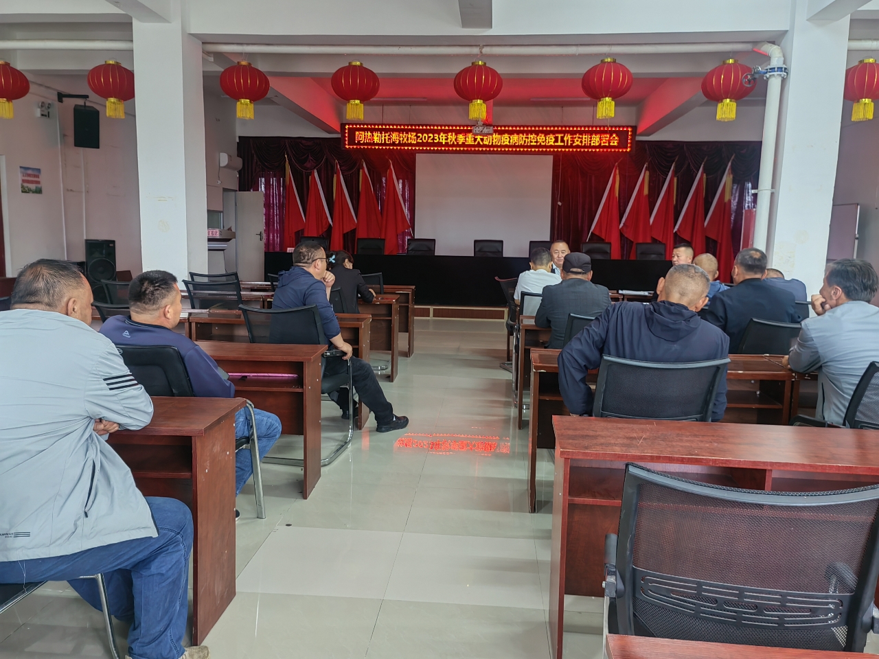 为切实做好秋季重大动物疫病防控工作,确保全场重大动物疫情形势保持稳定,保障畜牧业健康发展,按照上一级部门安排部署,阿热勒托海牧场畜牧兽医办组织各村级防疫员召开秋季重大动物疫病防控免疫工作安排部署会。