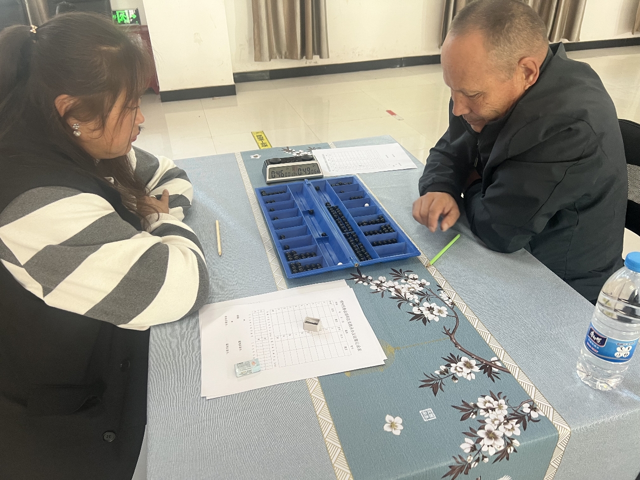 比赛中,伴随着棋子与棋盘清脆的碰撞声,参赛选手眼睛紧盯着棋盘,以沉着冷静的心态全情投入,仔细筹划、耐心布局、从容应战,为大家带来了一场极具才华和智慧的精彩对决。