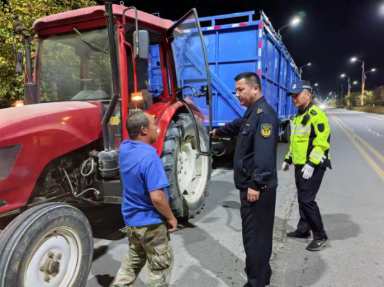 检查中,执法人员逢车必“查”、逢车必“看”,重点对无证驾驶、无牌行驶、违规载人、疲劳驾驶、等影响农机安全生产的行为进行检查,并对发现的农机安全隐患和问题责令整改。在做好安全执法检查的同时,执法人员还向农机操作人员开展农机安全宣传教育,提醒他们将安全放在第一位,在作业时严格遵守操作规程,时刻系紧秋收“安全带”,确保作业安全。
