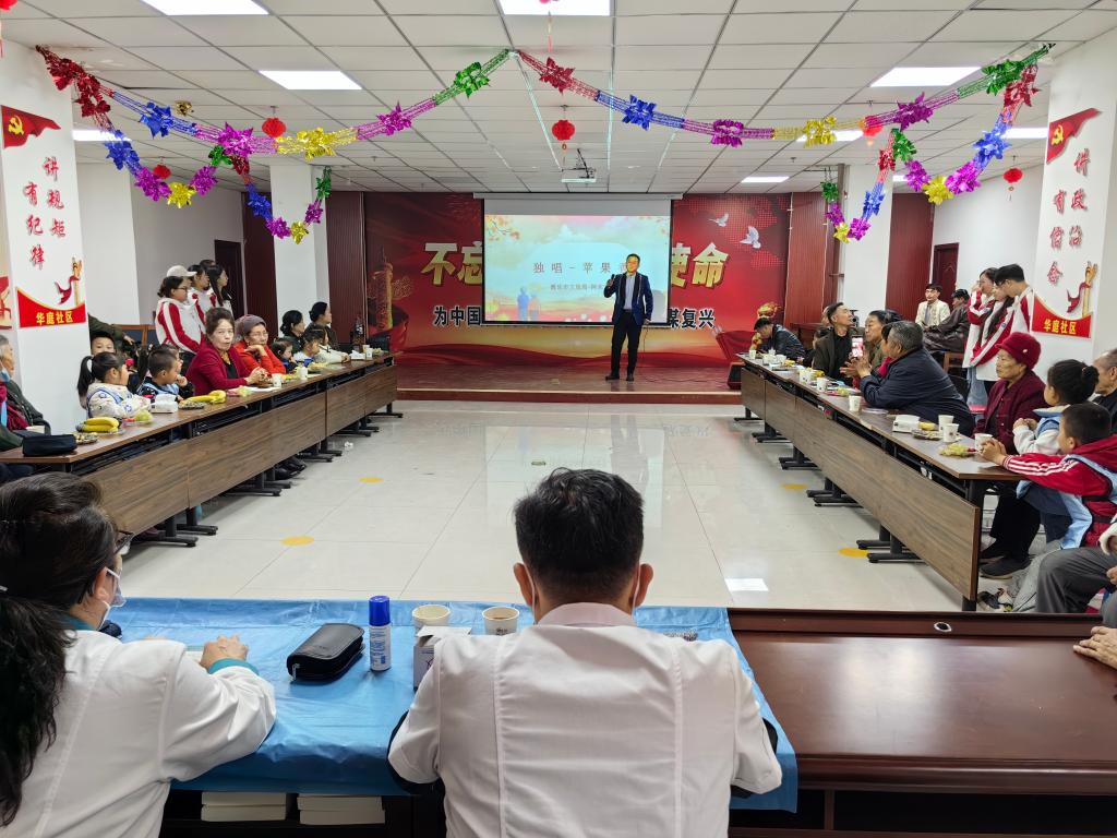 华庭社区联合博乐市文旅局、博乐市团委、馨宇幼儿园、宜居物业、社区卫生服务中心,邀请辖区老年人,开展了“老少同乐·相聚重阳·爱在宜居·情满华庭”重阳节联欢会,并送上社区的关爱和节日的慰问。活动中,博乐市宜居物业精心为老人们准备了长寿面,老人们吃着热呼呼的长寿面,脸上洋溢着幸福的微笑。博乐市文旅局、馨宇幼儿园的小朋友用动人的旋律、优美的歌声为老人送上一幕幕精彩的表演,表达对老人的敬爱之情。