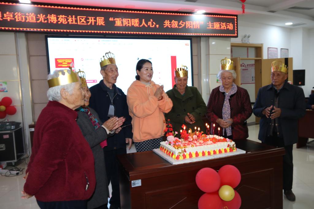 光博苑社区组织辖区52名老人开展“重阳暖人心.共叙夕阳情”主题活动,为辖区老年群体送上真挚的关爱和祝福。活动现场,社区干部精心准备了重阳蛋糕。光博苑社区还为老人安排了“重阳敬老义诊”环节及“定格最美瞬间”拍照环节。通过用照片记录他们“执子之手,与子偕老"的爱情,弥补他们年轻时的遗憾,为老人们留下美好的记忆。