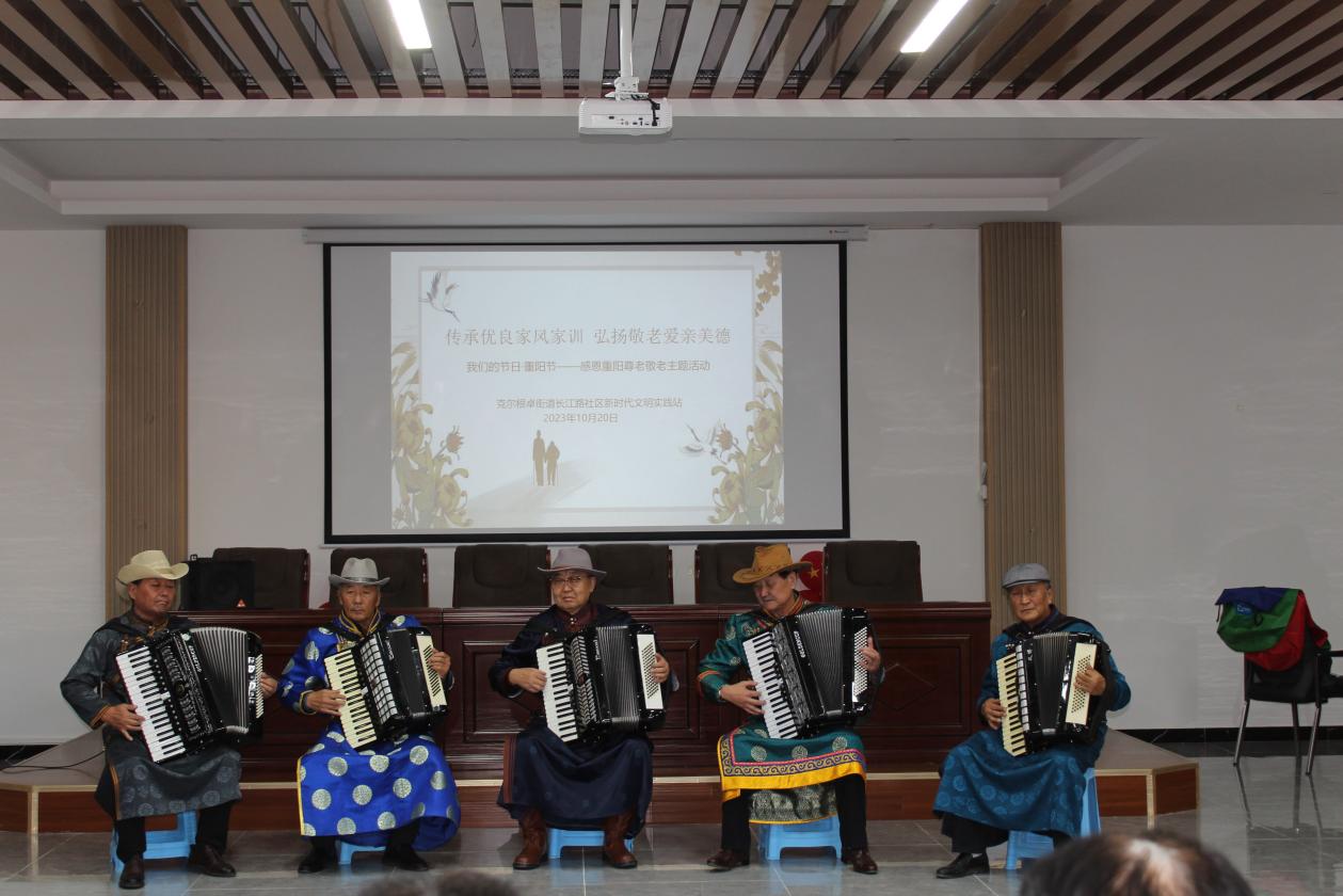 长江路社区举办了以“弘扬敬老爱亲美德,感恩重阳尊老敬老”的主题活动,现场以问答的形式来介绍重阳节这一节日的起源以及意义。伴随着格盼手风琴团队带来的《温泉河》,使现场达到氛围高潮,居民不禁上前跳起舞来。