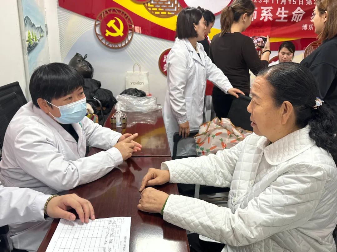 讲座结束后,社区干部和医务人员通过设立咨询台、悬挂主题横幅、发放慢阻肺知识宣传页、免费发放相关慢病药物等多种形式,向社区居民宣传慢阻肺的相关知识,并为前来问询的居民免费进行测血压、血糖,提高患者对疾病的认知、早筛早诊,做好自我管理,减少慢阻肺并发症的发生。