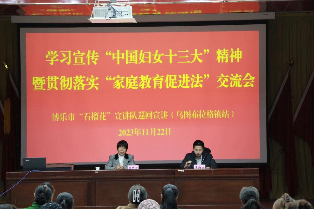11月23日下午,乌图布拉格镇邀请博乐市党委党校高级讲师崔巧霞开展学习宣传中国妇女第十三大精神暨家庭教育促进法宣讲活动。乌图布拉格镇党委副书记李海冰主持活动。此次宣讲活动,各村队(社区)妇联干部、家长、机关干部等100余人参加。