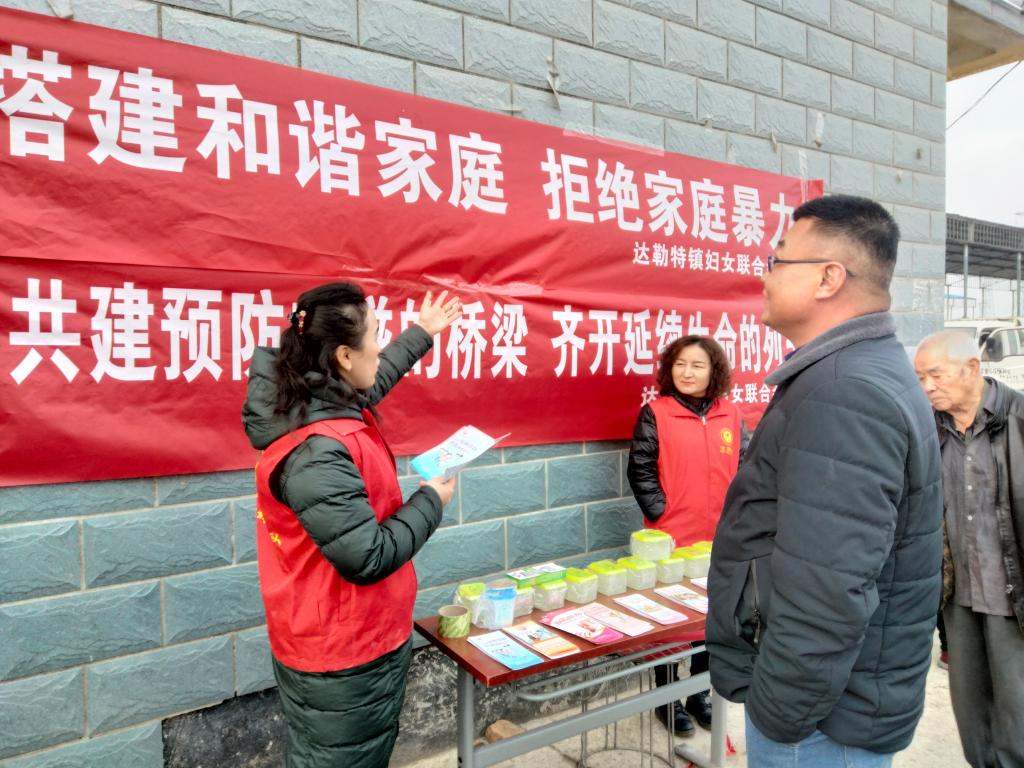 为切实提高广大妇女的反家暴意识,有效预防和制止家庭暴力,保护妇女在婚姻和家庭中的合法权益,营造平安家庭和和谐氛围,在“国际消除家庭暴力日”期间,达勒特镇妇联开展反对家庭暴力宣传活动。
