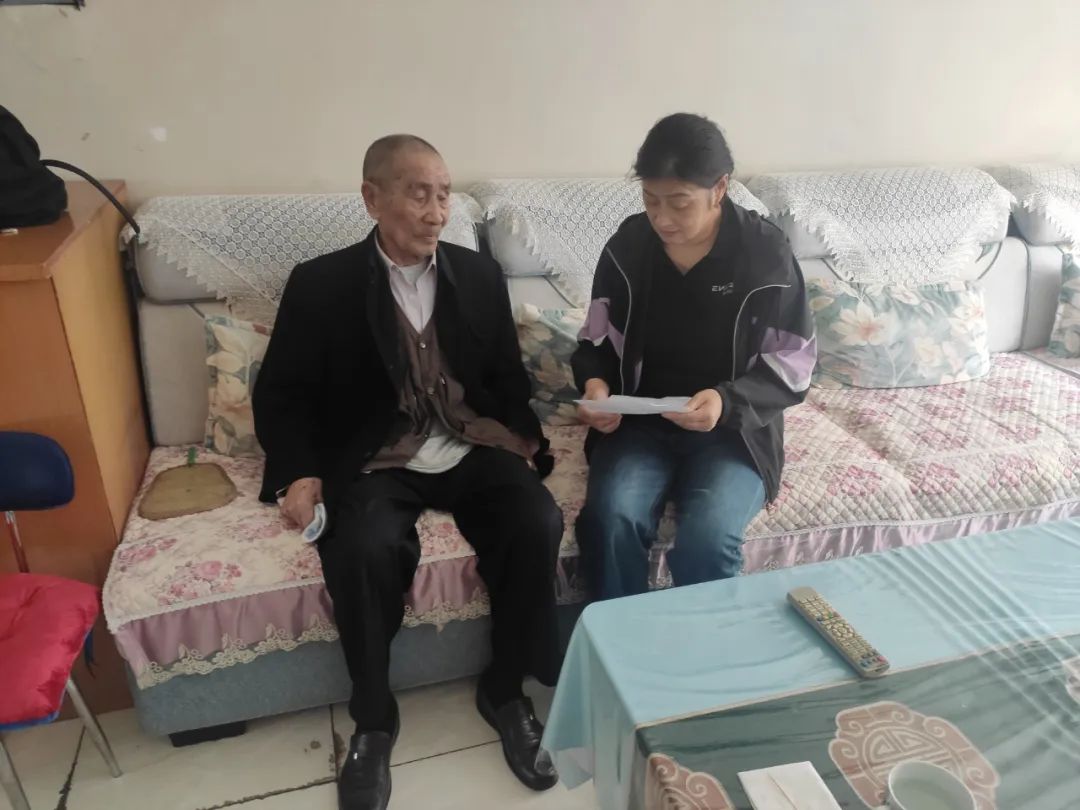 社区工作人员走进张洪乾家中,向张洪乾介绍退役军人相关政策,发放宣传资料,面对面答疑解惑。在聊天过程中,青得里街道长城社区第一书记杨静了解到张洪乾的妻子因身体原因,每天在医院接受治疗,便关切询问她的身体状况、看病就医、社会保障政策落实等情况,并仔细聆听了他们生活中遇到的困难,在得知桃阿姨需要一副助听器与一个轮椅后,杨书记帮助解决了眼前的困难。