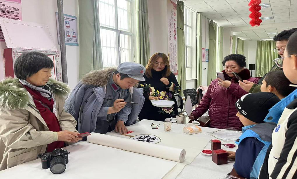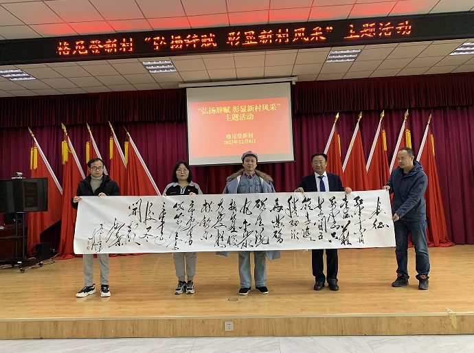 为学习贯彻党的二十大精神,全力推进乡村振兴示范村建设,传承中华优秀传统文化,丰富青少年文化生活,充分发挥党建引领和新时代文明实践站的中心纽带作用,2023年12月8日,格尼登新村邀请著名辞赋家、著名文化学者、《格尼登新村赋》作者刘书环教授、著名书法家、重大革命历史题材遵义会议《伟大转折》毛泽东青年时期扮演者王俊杰老师、乌图布拉格镇中心校书法社团的学生们,部分村队党员干部、村民在格尼登新村新时代文明实践站开展“弘扬辞赋文化,彰显新村风采”主题活动,进行一次辞赋文化党课、辞赋文化交流、辞赋文化实践的洗礼。