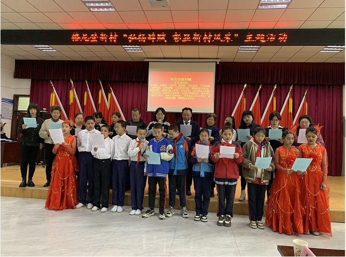 活动第二项,格尼登新村党支部书记其琴带头,村干部、村党员、艺术爱好者、学生登台,每人手拿一份《格尼登新村赋》,在作者刘书环教授的领读下,全体诵读了《格尼登新村赋》。