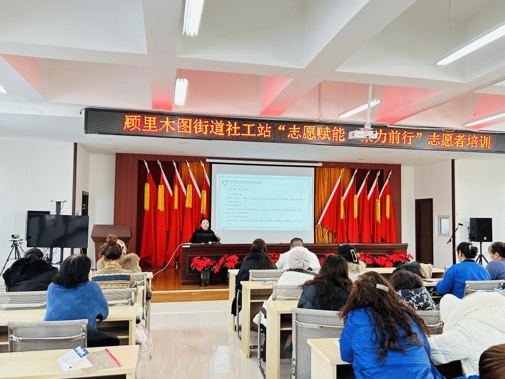 为进一步弘扬奉献、友爱、互助、进步的志愿者精神,营造志愿团队良好氛围,提高志愿者服务能力,培养一支热情服务居民、积极宣传和示范城市文明的志愿者队伍。2023年12月14日上午,顾里木图街道社工站在前进社区三楼会议室组织开展“志愿赋能 聚力前行”志愿者培训活动。