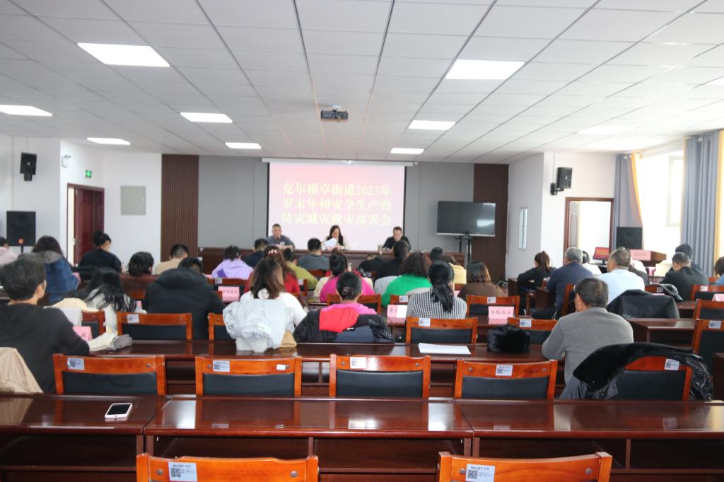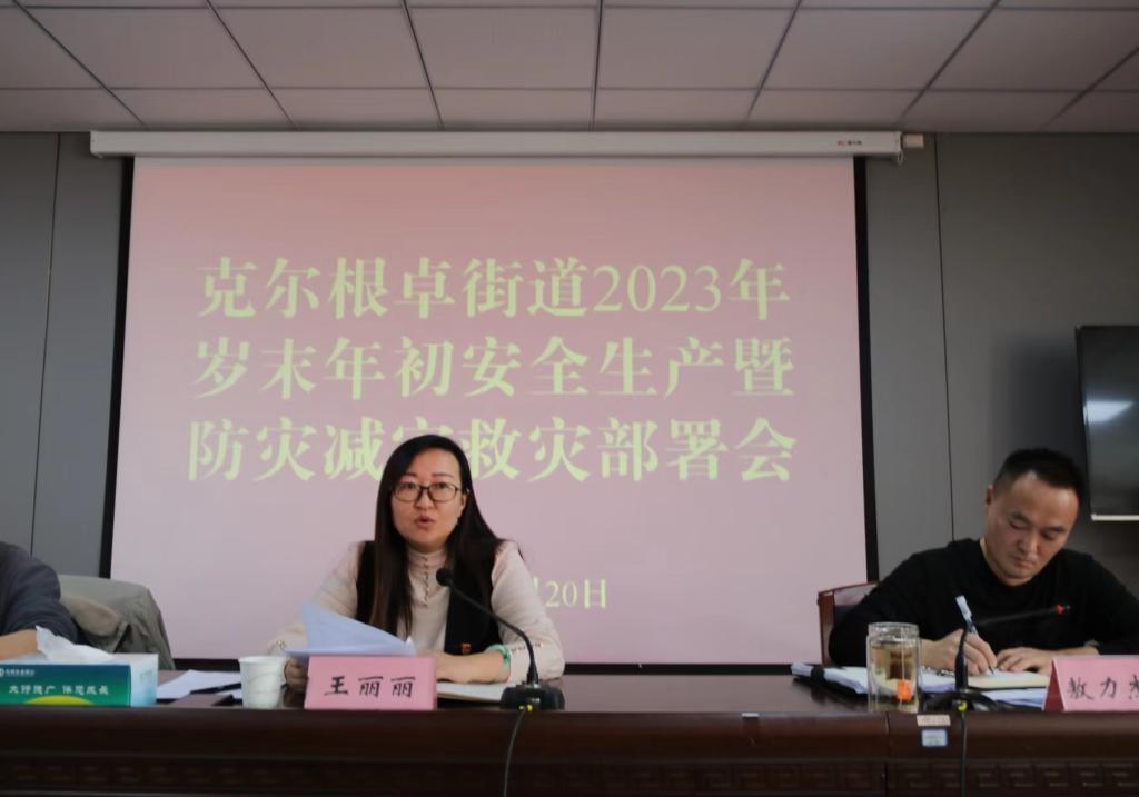 近期随着气温降低,博乐市出现降雪、寒潮等极端天气,生产生活用电、用气、用火增多,各类安全风险交织叠加。12月18日、12月19日甘肃积石县、新疆阿图什市先后发生6.2级地震和5.5级地震,安全生产和防灾减灾形势严峻复杂,为有效防范化解各类安全风险,及时消除安全隐患,12月20日下午克尔根卓街道召开岁末年初安全生产暨防灾减灾救灾部署会议。此次会议由街道党工委副书记、办事处主任敖力杰特主持,街道党工委书记、人大工委主任王丽丽作对近期安全生产暨防灾减灾救灾重点工作进行安排部署。各社区书记、辖区各单位负责人共计45人参加。