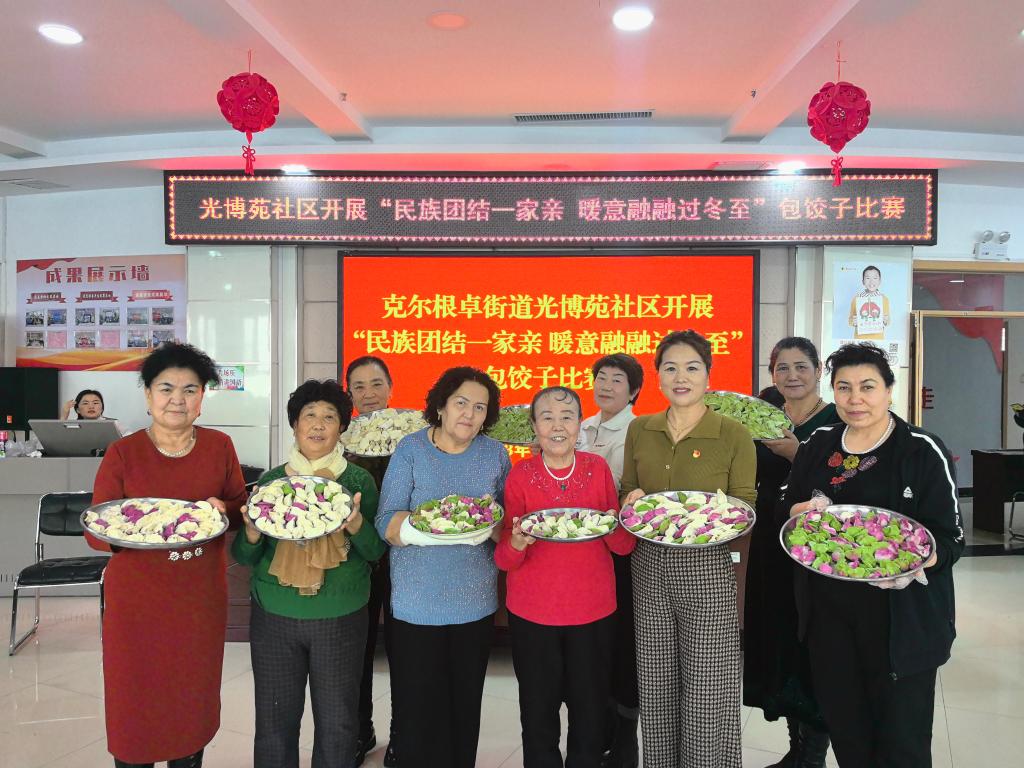 12月20日,光博苑社区组织辖区居民朋友举办了一场“民族团结一家亲 暖意融融过冬至”的包饺子比赛,大家欢聚一堂,其乐融融迎接冬至的到来。
