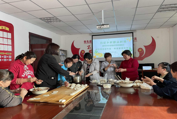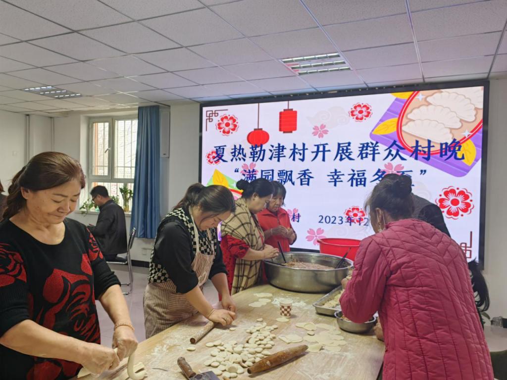 室外寒风烈烈,室内暖意融融。在玛尼村村委会二楼会议室,大家大展身手,用各自的手法捏出各式各样的饺子,还互相切磋着包饺子的技巧,作为中国传统手艺,包饺子不仅是一项技巧,更是一种团结合作的象征。