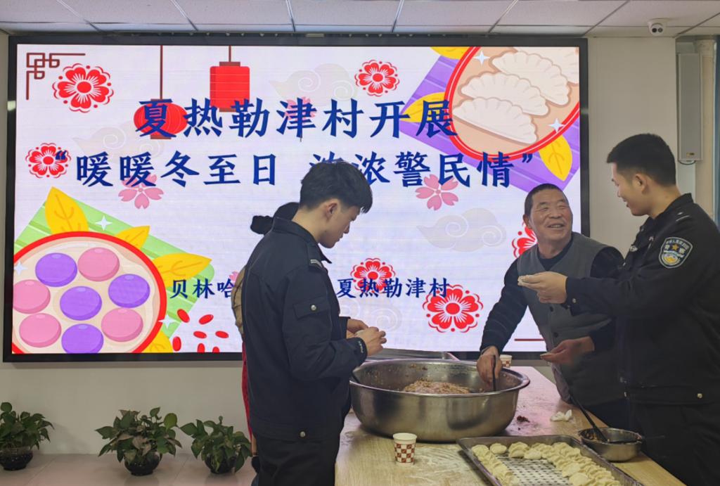 活动中,民警与村民们共同分工协作,你擀皮、我包馅,用自己拿手的方式包着各式各样的饺子,在锅碗瓢盆的碰撞声中,现场欢笑声不断,到处洋溢着家的味道、家的温馨。“每一个饺子都代表着民警和村干部对我们村民的关爱,我打心眼里感到幸福,我给村队点赞!”夏热勒津村村民冯淑华说。