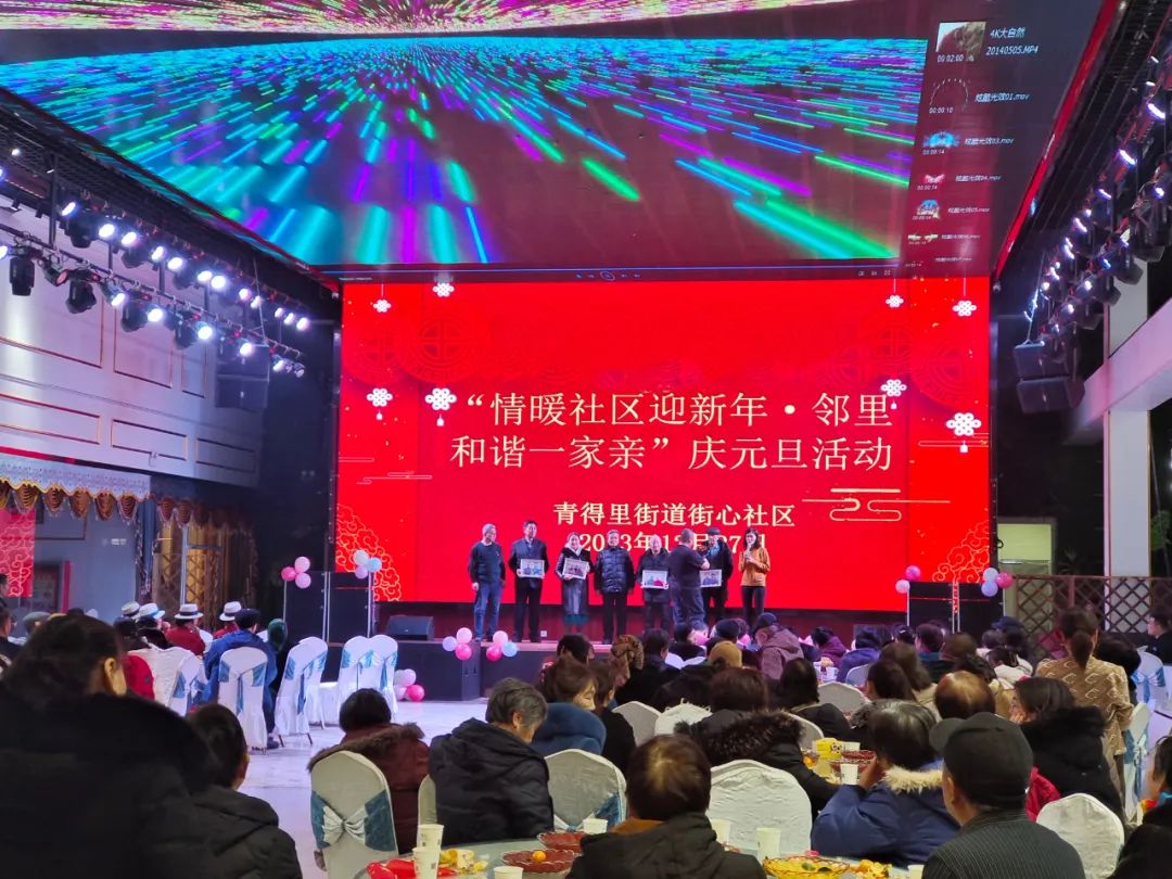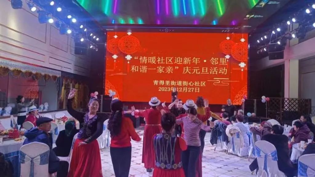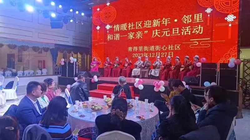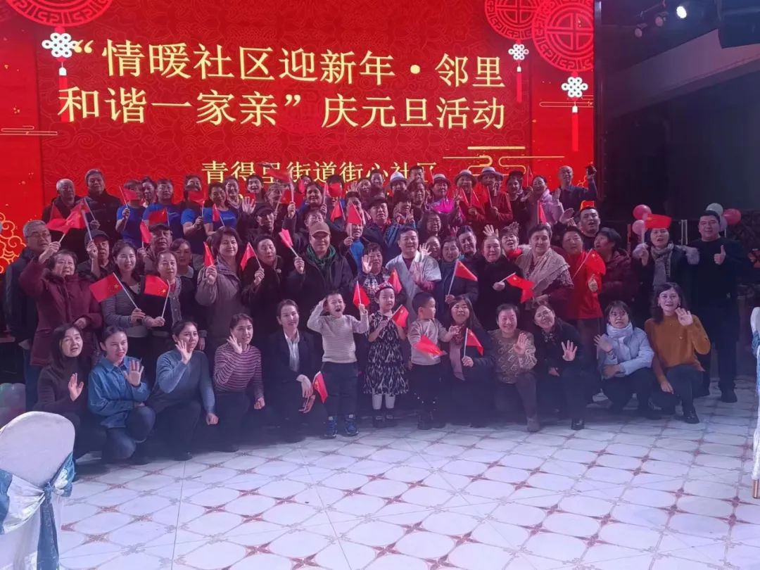 年年辞旧,岁岁迎新。为深入践行“与邻为善、以邻为伴”的两邻理念,进一步丰富辖区居民的精神文化生活,营造喜庆、文明、祥和的节日氛围,12月27日,青得里街道举办了“情暖社区迎接新年·邻里和谐一家亲”庆元旦活动。辖区居民代表、党员代表、共建单位、两新组织共100余人参加了活动,大家欢聚一堂、载歌载舞、共迎新年。
