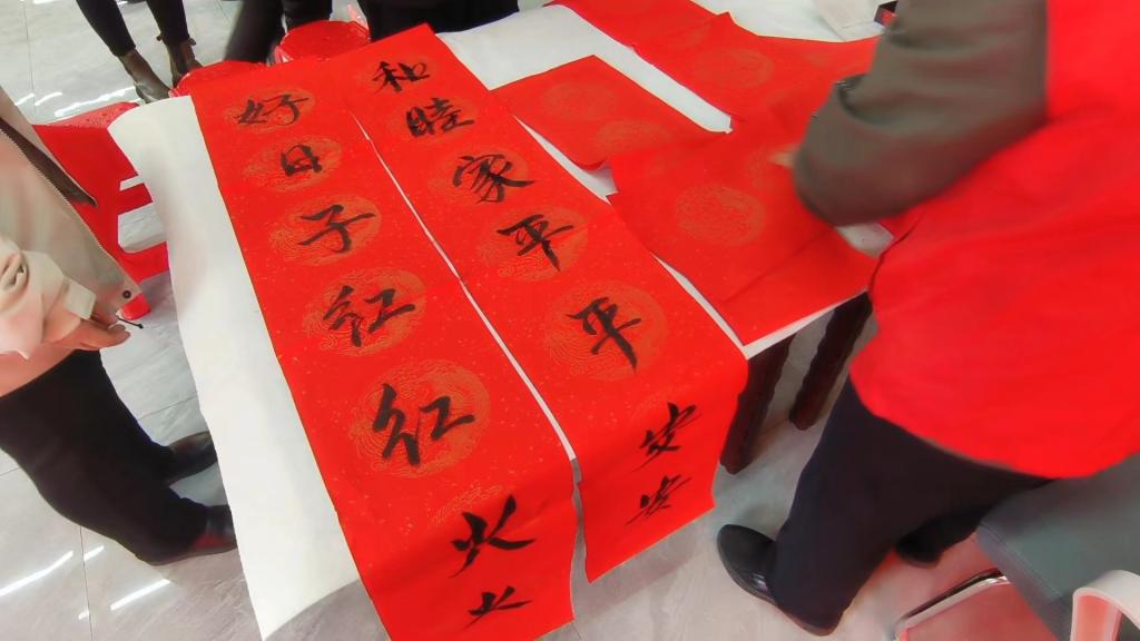 2023年以来,累计送出500面团扇,500余幅对联和“福”字,深受各族群众喜爱,不仅丰富了群众精神文化生活,传承中华优秀传统文化,铸牢中华民族共同体意识。