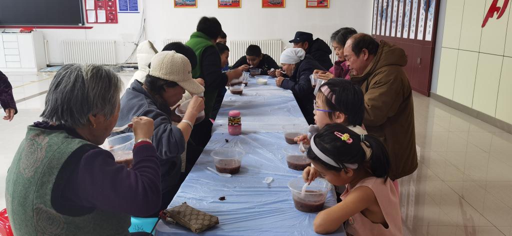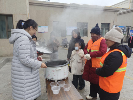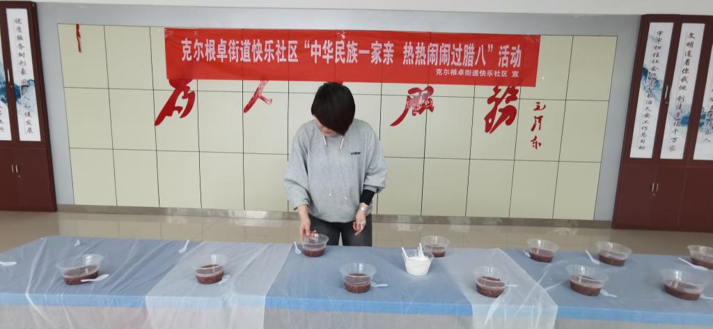 克尔根卓街道快乐社区在腊八节到来之际,组织开展“中华民族一家亲 热热闹闹过腊八”活动。快乐社区第一书记董建平秉持着匠人精神,用心熬制了一锅腊八粥,希望这热腾腾的粥不仅能温暖居民的胃,更能温暖他们的心。一锅腊八粥刚熬好,便给棋牌室打牌的居民送上了热腾腾的腊八粥;尽管天气寒冷,下着雪,物业公司人员仍坚守岗位,快乐社区将一碗碗热腾腾的腊八粥送到他们的手里,并给他们送去节日的温暖和祝福,一碗浓稠的腊八粥如同冬日里的暖阳,给寒冷的冬天带来浓浓温情。