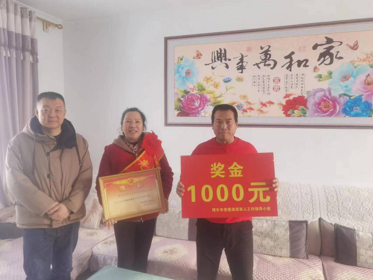 为弘扬拥军优属光荣传统,增强军人军属荣誉感,激励军人献身国防和在建新功的热情,2月5日,达勒特镇退役军人服务站在博乐市退役军人事务局党组副书记赵宇同志的带领下为达勒特镇现役军人李洪涛家属送上三等功喜报和慰问祝福,把党和政府的关怀和温暖送到军属家中。