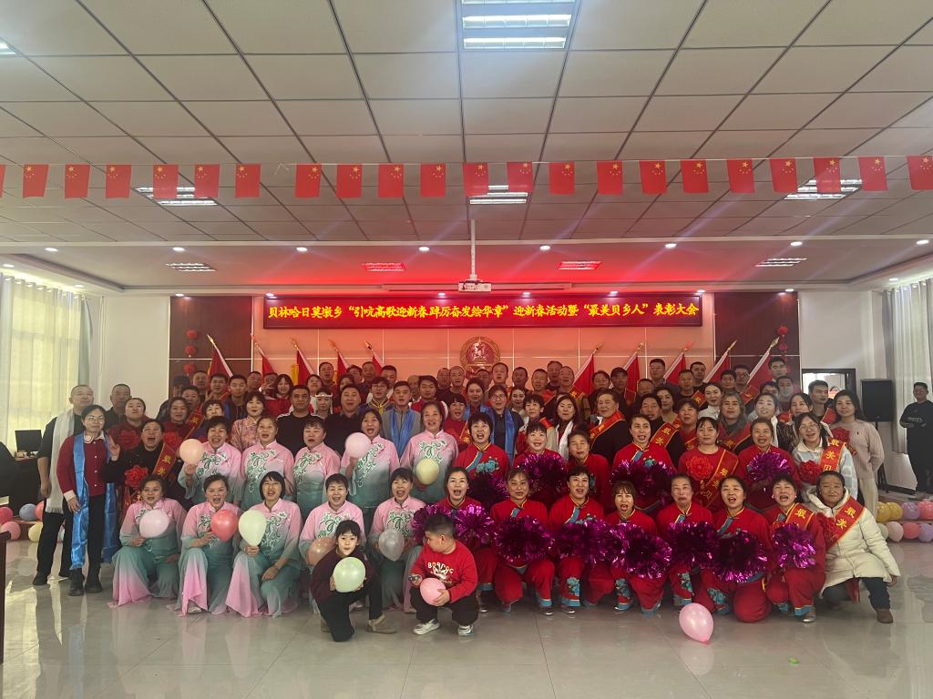 送文化,发挥特长获民好评。召开“中华民族一家亲·同心共筑中国梦”新春活动暨2023年度“最美贝乡人”表彰大会,为荣获“乡村振兴好支书”“石榴籽先锋”“踔厉奋发好干部”等10个称号的71名先进个人颁发荣誉证书和奖品。在贝林哈日莫墩村、决肯村相继开展铸牢中华民族共同体意识“志愿服务送关怀·文明实践树新风”迎新春系列活动。群众带着自编自导的节目相聚在“石榴籽服务站”,多才多艺的村民们通过乐器演奏、舞蹈、歌曲等多种形式的表演为观众呈现了一台精彩绝伦的文艺演出。